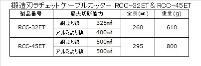 - 硬銅線、ACSR線等の硬鋼線は切断できません。